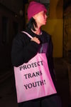 PROTECT TRANS YOUTH Tote Bag (Candy pink, black print)